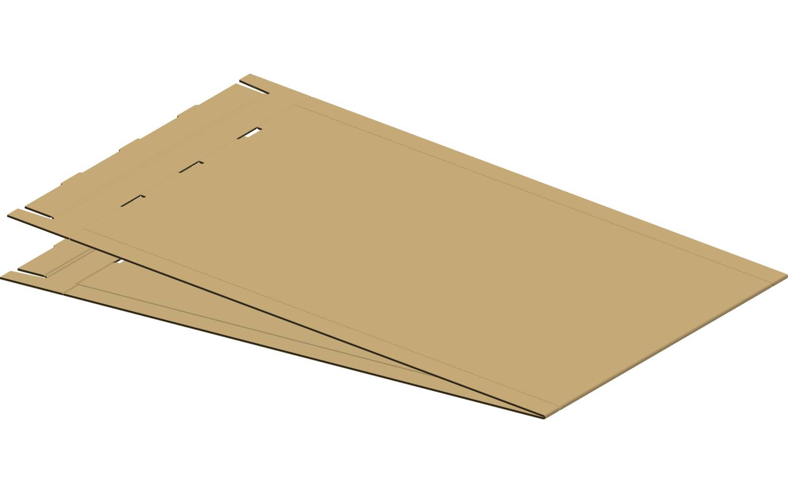 Pour répondre au besoin de notre client, nous avons conçu un fond dont les dimensions sont parfaitement adaptées à son produit : 1315 x 515 x 35mm. Nous sommes partis sur une découpe avec verrouillage, car les étapes de collage ou d’agrafage n’étaient pas envisagées par notre client.